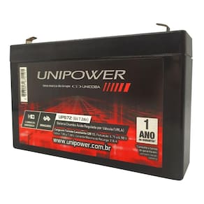 Bateria Selada VRLA 6V 7,2Ah UP672 Unipower Com o aumento de equipamentos que precisam de bateria para o seu funcionamento, a Bateria Selada VRLA 6V 7,2Ah UP67 é o a melhor opção para mantê-los funcionando com qualidade e maior durabilidade.