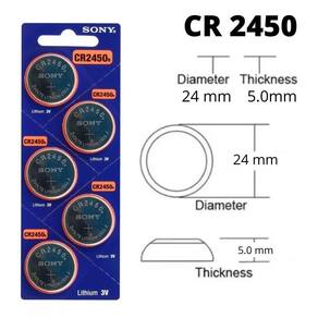 Atenção sony agora é murata A empresa japonesa murata comprou a divisão de pilhas da sony Continua com a mesma embalagem e a mesma qualidade, porém, com a marca murata Modelo - cr2450 Marca sony murata Quantidade 5 unidade Tipo de bateria: lítio Tensão nominal: 3v Tamanho da célula: moeda Iec: cr2450 Tipo de embalagem: cartela com 01 unidade Dimensões do corpo: 24.7 x 5mm Recursos da bateria: não recarregável Aplicações: Indicada para placa mãe cpu , relógios, balanças eletrônicas, calculadoras,computadores portáteis, Chaves elétricas, dicionários eletrônicos, registradores, cartões do ci, cartões de memória para o Equipamento do tratamento médico Embalagem 90 dias Marca: Não Informado