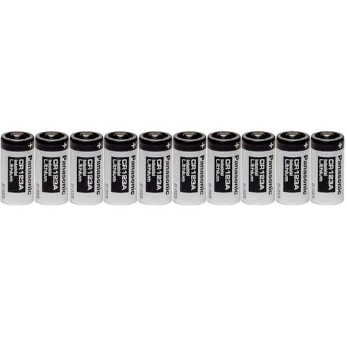 As baterias fotográficas oferecem energia confiável e duradoura para desempenho confiável foto após foto. Use-o para ajudá-lo a capturar momentos memoráveis com sua câmera digital. A bateria de 3 volts é feita com lítio. Também ligue sua lanterna, laser, NVG, alarme, controle remoto, localizador de alcance... etc - 10 baterias Panasonic Industrial CR123A ultra lítio de 3 volts - Embalagem a granel