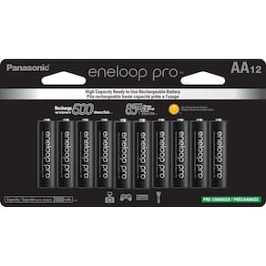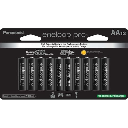 Eneloop Panasonic BK-3HCCA12FA pro AA baterias recarregáveis pré-carregadas Ni-MH de alta capacidade, pacote com 12 baterias - BATERIAS RECARREGÁVEIS DE NiMH EXTREMAMENTE PODEROSAS: Eneloop Pro AA bateria recarregável pré-carregada Ni-MH de alta capacidade proporciona até 2600 mAh típico, mínimo de 25000 mAh - DESEMPENHO DE LONGA DURAÇÃO: Recarregue as baterias recarregáveis Eneloop pro AA até 500 vezes - PRÉ-CARREGADO E PRONTO PARA USO: As baterias recarregáveis Eneloop Pro AA e AAA são pré-carregadas na fábrica usando energia solar e mantêm até 85% de sua carga após 1 ano (quando não usadas e armazenadas adequadamente) - EMBALAGEM SEGURA E PROTETORA: Este pacote contém 12 pilhas recarregáveis Eneloop Pro AA - TEMPERATURAS EXTREMAS: as baterias recarregáveis Eneloop Pro podem ser usadas em temperaturas extremas, até -4 graus Celsius. - QUALIDADE EM QUE VOCÊ PODE CONFIAR: Estas pilhas AA recarregáveis Eneloop Pro são feitas no Japão e embaladas nos Estados Unidos - Centenas de dispositivos domésticos: perfeitas para uso em centenas de dispositivos domésticos, essas baterias recarregáveis Eneloop Pro AA podem ser usadas em lanternas remotas, brinquedos, unidades de flash de câmera digital, controladores de jogos e muito mais