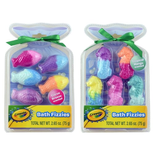 Faça da hora do banho um mergulho com o pacote Crayola Bath Seahorses & Fishes Bath Fizzies. Este pacote de 10 bombas de banho vibrantes em forma de cavalo marinho e peixe foi projetado para transformar qualquer banho em uma experiência colorida e refrescante para meninos, meninas e pré-adolescentes. Basta colocar um efervescente na banheira e ver como ele borbulha, eferve e libera um aroma suave e doce, criando uma aventura divertida e sensorial. Cada efervescente possui uma mistura de cores única, tornando cada banho uma surpresa! Não apenas para crianças, estes deliciosos efervores de banho também são perfeitos para adultos que procuram um refúgio como um spa em casa. Um produto Crayola oficialmente licenciado pela Taste Beauty, este conjunto traz diversão de alta qualidade para a hora do banho para crianças a partir de 3 anos. - Dê cor ao seu banho: a hora do banho não precisa ser uma tarefa árdua, para os pais ou para as crianças! A Crayola está aqui para tornar a hora do banho colorida, divertida e envolvente. Bath Fizzies by Crayola Bubble and fizz exatamente como suas bombas de banho favoritas, tingindo sua água e liberando bolhas calmantes. - Formas e aromas divertidos de peixe: não se contente com fizzers de banho chatos e padrão. Estas divertidas bombas de banho em forma de peixe parecem ter saído do oceano para o seu banho! Cada efervescente em forma de peixe é perfumado com um aroma doce e refrescante de brisa cítrica que se libera à medida que se dissolve. - Formas e aromas divertidos do mar: não se contente com fizzers de banho chatos e padrão. Estas divertidas bombas de banho em forma de cavalo-marinho parecem ter saído do oceano para o seu banho! Cada efervescente em forma de cavalo marinho é perfumado com um aroma tópico de manga doce que libera à medida que se dissolve. - Ótimo para todos: não apenas para seus filhos! Os adultos podem desfrutar desses ótimos refrigerantes de banho perfumados tanto quanto qualquer menino ou menina a partir de 3 anos! Aproveite os aromas doces e borbulhantes calmantes dos efervores de banho Crayola e desfrute de um dia de spa em casa por uma fração do preço. - Licenciado oficialmente: todos os produtos da Taste Beauty são oficialmente licenciados e autorizados pela Crayola, garantindo a mais alta qualidade disponível.