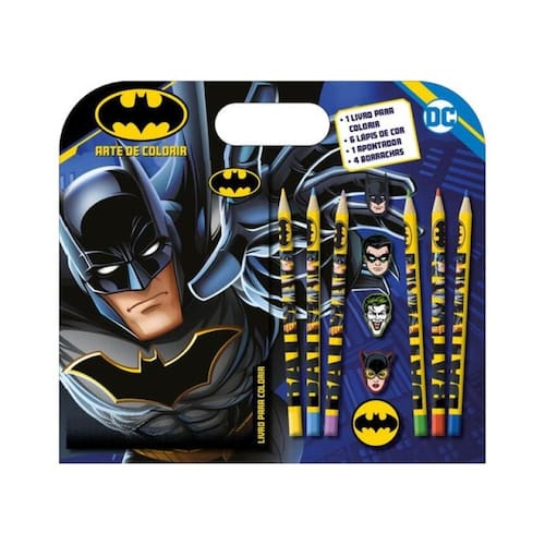 Venha se divertir no mundo de Gotham City com o "Batman Arte de Colorir"! Este kit incrível vem com um livro cheio de desenhos legais do Batman, 6 lápis de cor coloridos, um apontador e 4 borrachas divertidas. Pinte as cenas em que o Batman luta contra os vilões e salva a cidade. Com tudo o que você precisa para soltar a sua imaginação, este conjunto é perfeito para pequenos fãs do herói. Tenha horas de diversão colorindo a justiça com Batman!