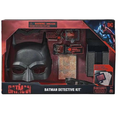 Batman - Playset Detetive - O Filme - Sunny 2918 Conteúdo da Embalagem: 1 Máscara do Batman, 1 Cinto de Utilidades, 1 Estojo de Detetive, 1 Batarang, 1 Lente de Decodificação Vermelha com Luz Led, 1 Lente de Aumento, 4 Cartas de Evidência, 1 Folha de Instruções