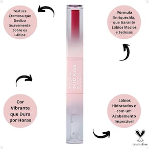 O Batom Duo Ruby Rose Duo Kiss DK09 HB-L6203-9 é a escolha ideal para quem deseja um visual versátil e prático com acabamento impecável. Este batom conta com duas opções em um único produto: um lado é um batom líquido matte, de alta pigmentação, e o outro lado é um gloss incolor, que proporciona brilho e hidratação aos lábios.
