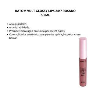 Gloss labial. vult glossy lips promove hidratação profunda para os seus lábios por 24 horas, 7 dias por semana, além de colorir e deixá-los com aparência saudável, livre do ressecamento. O glossy lips Vult alia beleza com cuidado entregando vários benefícios, como lábios hidratados, com cor natural e textura leve. O produto é rico em Ácido Hialurônico e também conta com um blend de vitaminas e óleos especiais que revitalizam os lábios e promovem hidratação profunda. Além disso, possui um toque macio e confortável, que não fica pegajoso e não escorre.