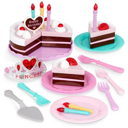 Conjunto de Bolo de Aniversário (24 Peças): Kit completo de festa em tamanho ideal para mãos pequenas, incluindo uma tiara brilhante para princesas.