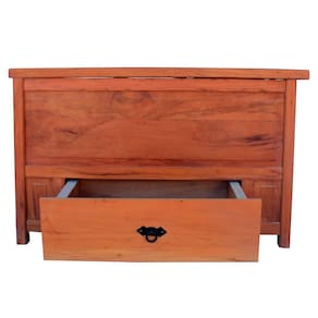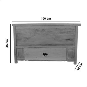 Baú banco 100% madeira maciça natural, com 1 metro de comprimento e 1 gaveta, ideal para organizar brinquedos, mantas ou objetos diversos. Acabamento em verniz especial que garante durabilidade, resistência e charme para ambientes como sala, quarto ou varanda.