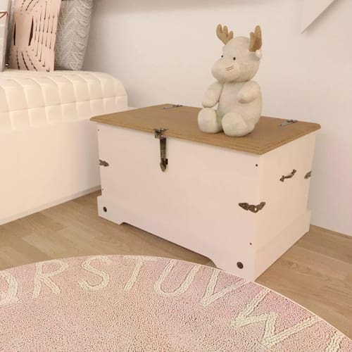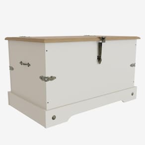 Baú 80x45,5cm Smile Serpil Baby Creme/Carvalho. O Baú Smile torna-se o produto ideal para ter no seu quarto ou na sua sala, e guardar seus objetos com segurança e facilidade. O produto ainda vai auxiliar esteticamente, já que vai deixar seu ambiente ainda mais bonito, em virtude de suas cores e estrutura de MDF com o tampo de madeira maciça e as ferragens padrão ouro envelhecido, que fazem uma excelente combinação, característicos da linha Smile. Ean: 7894047043891