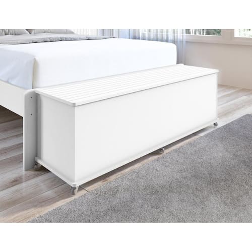 O Baú banco Elena é um produto para quem procura um design bonito e utilidade na organização de espaços Ideal para guardar brinquedos, sapatos, e artigos de cama. Além da utilidade apresentada, ele é de fácil movimentação, possui seis rodízios para ser movimentado para onde quiser. A porta é segura, conta com dois pistões reforçados para que não feche enquanto aberto. Tampo superior e inferior em MDF 15mm usinado com cantos arredondados. Tampo exclusivo com design frisado, exclusividade Casa D.