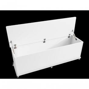 O Baú banco Elena é um produto para quem procura um design bonito e utilidade na organização de espaços Ideal para guardar brinquedos, sapatos, e artigos de cama. Além da utilidade apresentada, ele é de fácil movimentação, possui seis rodízios para ser movimentado para onde quiser. A porta é segura, conta com dois pistões reforçados para que não feche enquanto aberto. Tampo superior e inferior em MDF 15mm usinado com cantos arredondados. Tampo exclusivo com design frisado, exclusividade Casa D.