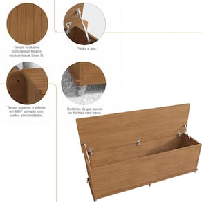 Material da estrutura: MDF/MDP de 15 mm com tampo basculante com design frisado;