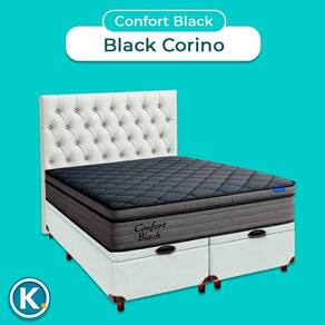 Conjunto King Colchão Confort Black + Cama Box Bau Branco + Cabeceira
