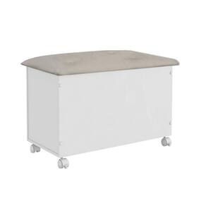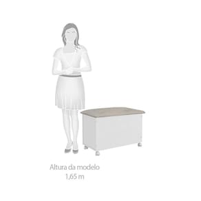 Baú com Tampo Estofado Elô Móveis Peroba Branco Brilho/Bege