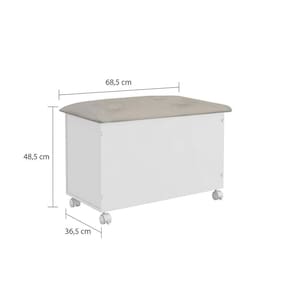 Coloque em seu cômodo móveis que agreguem conforto e charme, com o Puff Baú da Peroba você ainda conta com um baú para que você possa armazenar pertences como o enxoval do seu bebe mantendo o ambiente organizado. Seu formato retangular, com revestimento em capitonê na cor branca tornam o espaço bem proveitoso e extremamente aconchegante. Possui também estrutura feita em MDF e rodízios para melhor locomoção do móvel. Compre já!