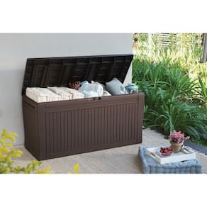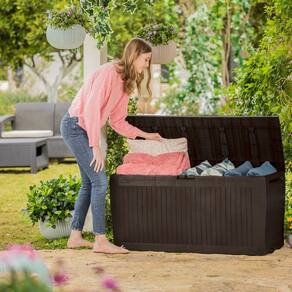 Baú Comfy Marrom 270L da Keter Armazenamento Elegante e Prático para o Exterior|O Baú Comfy Marrom 270L da Keter é a solução contemporânea perfeita para armazenamento em áreas externas. Com design sofisticado e fabricação em resina de alta durabilidade, ele resiste a todas as condições climáticas, garantindo que seus pertences como almofadas, brinquedos e acessórios de churrasco fiquem sempre seguros, ventilados e secos.||Mais do que um simples baú, ele também é uma peça de mobiliário versátil que une funcionalidade e estética. Seja na varanda, jardim ou área de lazer, o Comfy contribui para a organização e valorização do ambiente externo.||Adquira já o seu Baú Comfy Marrom 270L e descubra como a Keter transforma armazenamento em praticidade, estilo e durabilidade.||Funcionalidades e Vantagens|Capacidade espaçosa: 270 litros para armazenar itens de lazer e entretenimento|Conforto e resistência: tampa suporta até 220 kg, podendo ser usada como assento|Mobilidade facilitada: com alças e rodas embutidas para fácil movimentação|Segurança: opção de travamento com cadeado (não incluso)|Montagem simples: rápida e sem necessidade de ferramentas||Dimensões do Produto Montado|Comprimento: 117 cm|Largura: 45 cm|Altura: 57 cm|Dados do Produto|SKU: 17202436|Garantia: 90 dias contra defeitos de fabricação|Marca: Keter|NCM: 9403.70.00|EAN: 7290106930216|Dados da Embalagem|Peso total (produto + embalagem): 7.120 g|Altura: 8,60 cm|Largura: 54,60 cm|Profundidade: 116,40 cm||Informações Importantes|Limpeza: não use produtos químicos, alvejantes ou corrosivos. Utilize apenas pano úmido.|Entrega: este produto é entregue desmontado.|Montagem: siga corretamente as recomendações do fabricante para não perder a garantia.|Política de Trocas e Devoluções: observe os prazos de garantia, devolução e possibilidade de troca informados no site.|Promoções: condições válidas durante o período informado ou enquanto durarem os estoques.||