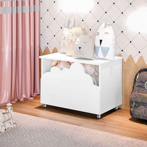 Baú De Brinquedos Alegria - BrancaBaú possui design vazado em formato de nuvem perfeito para organizar brinquedos e fazer parte da decoração com sua delicadeza. Feito em material MDF com tampo com dobradiças metálicas, também acompanha rodízios para locomoção.Tipo: Báu OrganizadorModelo: AlegriaCor: Branco Garantia: 90 diasProduto DesmontadoEstrutura em MDFPintura UV Verniz BrilhoMedidas:Altura: 44cmLargura: 61cmComprimento: 38cmATENÇÃOIMAGENS MERAMENTE ILUSTRATIVAS REALIZADO EDIÇÃO, PODENDO HAVER UMA PEQUENA VARIAÇÃO DE COR DEPENDENDO DE CADA TELA OU MONITOR.Baà de Brinquedos Alegria - Branca