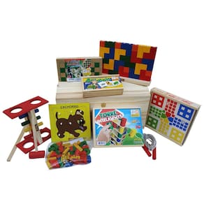 Baú de madeira com tampa em formato de arco, com fechadura metálica. Será possível fazer 12 brincadeiras diferentes Composto por: Bate pinos, Pula corda, Memeria de animais, Blocos de construção, Blocos de encaixe vertical, Torre inteligente, Quebra cabeça cachorro, Xadrez e o 4 em 1 dama, trilha, ludo e dominó tradicional . Todos jogos de ótima qualidade, resistentes e coloridos para divertir e alegrar a criançada Tamanho do Baú de madeira: 53x30x27cm. CE-BRI/ICEPEX - N 00928-96 Ean: 7898325173263