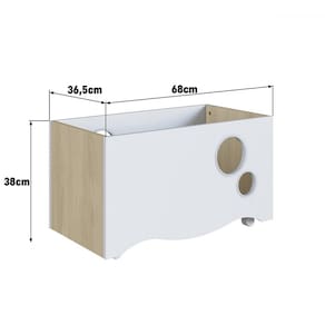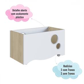 O(a) Baú de Brinquedos Encanto com Rodízios Carvalho Araguaia/Branco - Completa Móveis é produzido em MDP na escala de brilho Fosco, e possui um grau de dificuldade de montagem: Médio.