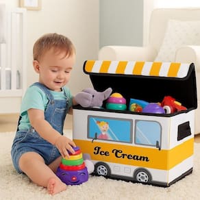 Com A Caixa Baú Infantil, as crianças vão se divertir enquanto organizam e guardam seus brinquedos! Revestido de vinile papel Paraná , este puff é leve, prático e muito funcional. Além disso, traz um toque alegre e descontraído ao quarto das crianças, tornando-o um item indispensável para a organização e decoração.