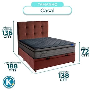 Modelo: Elite Marca: Nature Tamanho: Casal Tecido: Veludo Largura: 138cm Comprimento: 188cm Altura: 35cm Altura dos Pés: 7cm Material dos Pés: Madeira Suporte de Peso: 150Kg Peso: 35Kg Garantia: 3 Meses