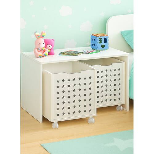 Baú E Mesa Para Brinquedos Infantil Em MDF ----------------------------------------------------------------------------------------------------- *Alto padrão; *Produzido 100% em MDF com laminado BP; *Móveis resistente à agua através da tecnologia de colagem PUR; *Nossos produtos não são produzidos em série, são frutos da marcenaria moderna feitos um a um por profissionais experientes e com tecnologia de ponta; *Não produzimos móveis em aglomerado ou MDP; *Cor predominante Branca; *1 lado de cada baú é trabalhado com corte a laser; *Possuí Rodizio;