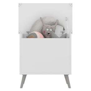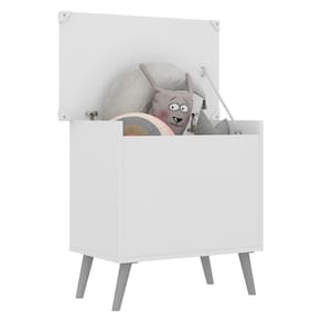 o baú organizador caixa de brinquedos retrô multimóveis é produzido em mdp com acabamento acetinado (cerca de 20% de brilho), que garante maior durabilidade, resistência e facilidade na limpeza. com amplo espaço interno para organizar brinquedos ou outros pertences, ele suporta até 15kg e, para maior segurança, o articulador da tampa possui trava, para evitar acidentes. os pés retrô, em polipropileno, dão um charme especial ao móvel deixando-o com um visual leve e permitindo você compor um ambiente com ar vintage e moderno ao mesmo tempo.
