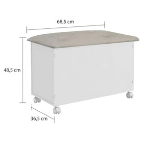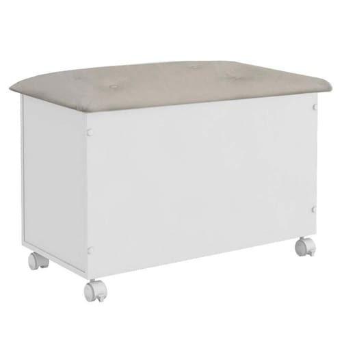 Baú Organizador Elô com Tampo Basculante Estofadado e Rodízios - Móveis Peroba O Baú Organizador Elô une praticidade e charme em um único móvel. Com estrutura em MDF e pintura UV atóxica, conta com tampo estofado em capitonê revestido em tecido corino, proporcionando conforto e um visual sofisticado. O sistema de abertura com pistão a gás e dobradiças metálicas garante segurança e facilidade no uso. Para maior mobilidade, possui 4 rodízios, sendo 2 com travas. Ideal para armazenar brinquedos, roupas ou acessórios, é uma solução funcional e elegante para o quarto infantil ou outros ambientes da casa.