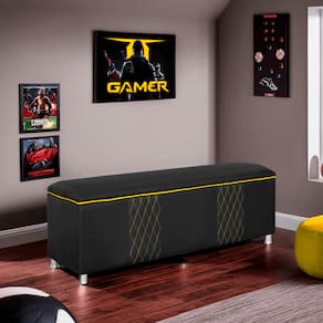 Baú Organizador Para Quarto Gamer 140cm CorinoTransforme seu quarto gamer com o Baú Organizador Gamer — o móvel que combina design temático, praticidade e estilo em um só item.Perfeito para guardar: Tênis, roupas, controles, cabos, periféricos ou aquele setup reserva, ele mantém tudo no lugar enquanto adiciona um toque insano de personalidade ao ambiente.Produzido em corino premium e com acabamento digno de pro player, esse baú é a fusão entre organização e imersão.Chega de bagunça no quarto ou espaço apertado — agora seu setup fica estiloso e funcional ao mesmo tempo.Baú Gamer: o Loot perfeito para o seu quarto de jogador!CARACTERÍSTICAS DO PRODUTO: - Estofamento: Espuma D26; - Revestimento: Corino; - Material da Estrutura: Madeira de eucalipto de reflorestamento;- Pés em PVC;- Modelo retangular, tendência nos lares e comércios! DIFERENCIAIS: - Produto de alta qualidade; - Design moderno;- Costura resistente; - Estrutura segura;- Para a limpeza, recomendamos utilizar pano levemente úmido e detergente neutro. DIMENSÕES: Largura: 140 cmAltura: 45 cm Profundidade: 45 cm Peso: 13 kg.DIMENSÕES INTERNAS:Largura: 132 cmAltura: 30 cm Profundidade: 38 cmVOLUMES, MONTAGEM E GARANTIA:- Uma unidade por embalagem;- O produto chegará montado, sendo necessário apenas rosquear os pés;- Garantia do fabricante: até 90 dias corridos após o recebimento, contra defeitos de fabricação; INFORMAÇÕES IMPORTANTES:- A entrega do produto é realizada em todo território nacional, até onde as rodovias alcançam.- Objetos decorativos que aparecem na foto não acompanham o produto;- Pode haver diferença de tonalidade entre a imagem e o produto real, por conta de lote de tecido, tratamento de imagens e a calibração de cores do seu monitor;- Por se tratar de estofado as medidas podem ter uma variação em até 3 cm;- Confira as dimensões do produto e certifique-se de que passará normalmente por elevadores, portas, escadas e/ou corredores de sua residência, já que nossa entrega não inclui a subida de lances de escada, ou o içamento de produtos; Marca: Não Informado