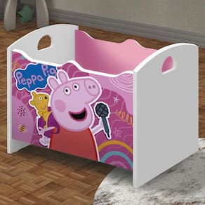 Feito em MDF. Possui cantos arredondados e laqueados, adesivos peppa de alta qualidade (não desbotam e não descolam facilmente)