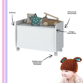 Organize os brinquedos de forma prática e diida com o Baú Aquarela Branco! Com rodinhas para fácil movimentação e tampo com pistão a gás para maior segurança, este baú é a solução perfeita para manter o ambiente sempre arrumado.