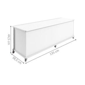 PRODUTO PRECISA DE MONTAGEM?: Sugerimos a contratação de um montador para a montagem do produto. Não nos responsabilizamos por causadas no ato da montagem. | ALTURA DO PRODUTO (CM): 44.5 | COMPRIMENTO PRODUTO COM EMBALAGEM (CM): 38.9 | LARGURA PRODUTO COM EMBALAGEM (CM): 152.5 | PESO PRODUTO COM EMBALAGEM (KG): 24.9 | CONTEÚDO DA EMBALAGEM: 1 Baú | COMPRIMENTO DO PRODUTO (CM): 38.5 | COR PREDOMINANTE: Branco | LARGURA DO PRODUTO (CM): 135 | DESCRIÇÃO DO TAMANHO: 44.5x135x38.5 cm | MATERIAL PRINCIPAL: MDF | PESO DO PRODUTO (KG): 24.1 | ESTADO DE ORIGEM: SP | CORES DO PRODUTO (FILTRO DE CORES): Branco | PRODUTO: BAÚ | ALTURA DO PRODUTO COM EMBALAGEM (CM): 8.1 | MATERIAL PARA FILTRO: MDF | MARCA: CasaH | INSTRUÇÕES/CUIDADOS: Limpar com pano macio e seco, não utilizar produtos abrasivos