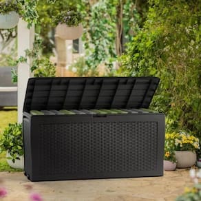 Baú Keter Samoa - 270 LitrosSucesso de vendas nos Estados Unidos agora no Brasil e a pronta entrega.Ideal para armazenar almofadas de cadeiras e acessórios de pátioA resistência às intempéries torna esta solução de armazenamento atraente, mas de baixa manutençãoMantém os itens armazenados secos e ventiladosFácil montagemFeito de resina durável e resistente às intempériesAlças e rolos integradosDimensões : 116,7 x 44,7 x 57 cmCapacidade volumétrica: 270 Litros