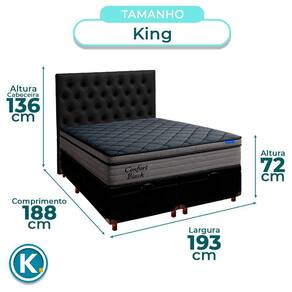 Baú Preto + Cabeceira + Colchão King Confort Black Ortobom Conjunto King Colchão Confort Black + Cama Box Bau Preto + Cabeceira O Colchão Confort Black Ortobom une tecnologia e conforto para um sono de qualidade. Conta com pillow top em espuma D28 selada, que garante maciez, resiliência e durabilidade. Sua estrutura interna em EPS de alta resistência oferece suporte firme e estável, mantendo a ergonomia ideal.