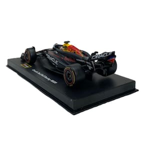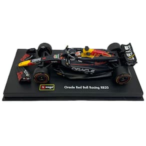 Este é um modelo em escala do carro de Fórmula 1 da Oracle Red Bull Racing RB20, pilotado por Max Verstappen. Ele é produzido pela marca Bburago na escala 1/43 e é feito de metal fundido (die-cast). O modelo apresenta a pintura e os adesivos oficiais da temporada, incluindo os logotipos da Oracle, Red Bull, Bybit e Honda. A embalagem também mostra a imagem de Max Verstappen.
