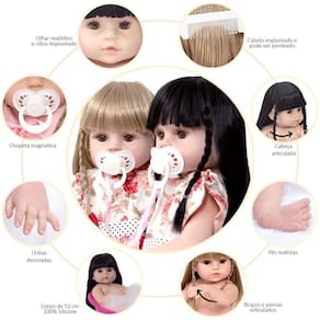 Tags: Boneca, Bebe, Reborn, Realista, Menina, Infantil, Silicone, Princesa, Linda, Morena, Loira, Fofa, Banho, Enxoval, Completo, Grande, Baby Alive.