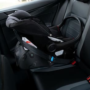 O DRC Cocoon também pode ser acoplado ao carro por meio de um cinto de segurança de três pontas ou de uma base compatível, que é vendida separadamente.