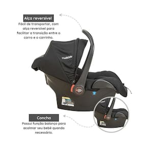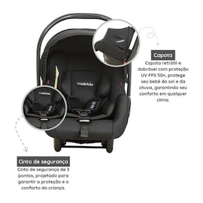 Características técnicas: Idade recomendada: grupo de massa 0+ até 13 kg Fácil instalação. Acolchoado macio com redutor para maior conforto do recém-nascido. Capota retrátil e dobrável com proteção uv fps 50+. Maior segurança na fixação. Cinto de segurança de 3 pontos. Alça de transporte articulável. Estrutura plástica de alta resistência. Tecido poliéster. Pode ser acoplado nas bases 5156 isofix e 5153 vendidos separadamente Observação: não vem com adaptador adaptador vendido separadamente