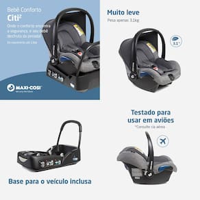 Além disso, o Citi 2 é compatível com todos os modelos de carrinhos Maxi-Cosi comercializados no Brasil, garantindo versatilidade e praticidade. E para passeios que vão além das estradas, o Citi2 é testado e aprovado para uso em aviões