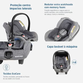 - Redutor extra acolchoado com memory foam: posição ergonômica e segura para os recém-nascidos, com correta sustentação de cabeça, tronco e membros;