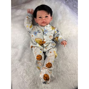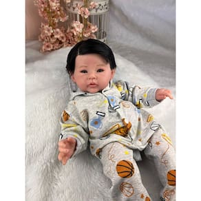 Nossos bebês são confeccionados com o mais alto padrão de qualidade em vinil siliconado e tecido macio. Os olhos castanhos brilhantes garantem uma aparência encantadora e realista.