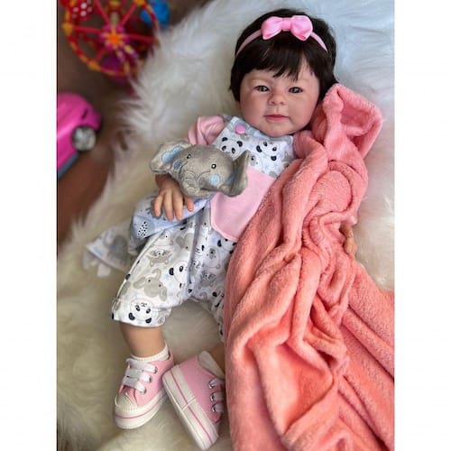 Ela possui tamanho e peso semelhantes ao de um bebê real! Aproximadamente 50cm e peso aproximado de 2Kg.