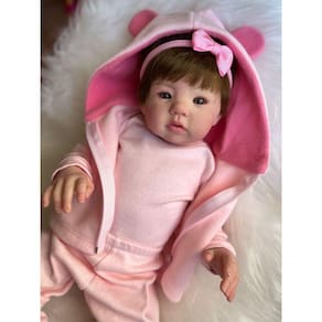 SOBRE O BEBÊ: Essa bebê possui pintura realista, detalhes encantadores que simulam a pele de um bebê de verdade, como: palma da mão e ponta dos dedos rosados, manchinhas de frio, veias, sobrancelha pintada fio a fio, cílios e cabelo enraizados fio a fio.