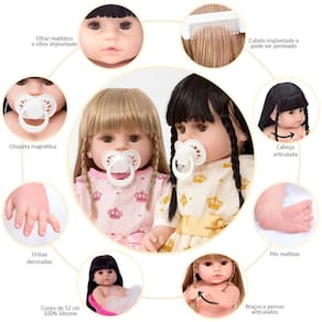 Tags: Boneca, Bebe, Reborn, Realista, Menina, Infantil, Silicone, Princesa, Linda, Morena, Loira, Fofa, Banho, Enxoval, Completo, Grande, Baby Alive.