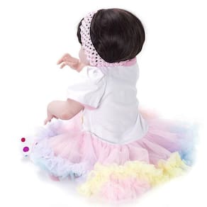 Altura: 55cm. Peso: 1,3 Kg. Material: Vinil. Cabelos: Enraizados sintético. Feitos a mão. Olhos: Castanho, não pode ser fechados. Movimentos: A boneca reborn pode sentar e deitar, não pode falar nem comer. Conteúdo da Embalagem 1 Bebê Reborn com roupas, 1 Mamadeira 1 Chupeta Certificado INMETRO CE-BRI/IQB-167 Ean: 7891065471583