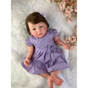 Bem-vindo(a) à nossa loja! É um prazer tê-lo(a) aqui conosco.Nossa equipe está comprometida em oferecer produtos de qualidade, atendimento personalizado e uma experiência de compra segura e confortável.Agradecemos sua visita e esperamos vê-lo(a) novamente em breve! Brincar com boneca ajuda a desenvolver a criatividade, a imaginação e a confiança das crianças.Portanto, presentear com um dos nossos bebês é, antes de tudo, um ato de amor! \n DESCUBRA A EXCELÊNCIA: SEU BEBÊ REBORN REALISTA, FEITO À MÃO POR ARTISTAS TALENTOSOS! PRODUTO TOTALMENTE ARTESANAL – autêntico Descrição do Produto: · Corpinho: Vinil Siliconado · Membros: Vinil siliconado · Olhos: Azul profundos · Peso: Aproximadamente 1,8 kg · Medida: 48 cm · Cabelo: Castanhos · Pintura: Técnica reborn de última geração, com detalhes realistas como manchinhas arroxeadas, veias aparentes, marquinha de vacina, unhas francesinha e manchinhas de frio. \n O que acompanha a boneca: (A roupinha varia conforme o estoque.) 1 Vestido 1 Par de sapatinhos 1 Laço2 Fraldas1 Chupeta magnética e 1 mamadeira1 Receitinha de leite falso para brincar1 Certidão de nascimento1 Teste do pezinho1 Manual de cuidados1 Carteira de vacinação1 Ultrassom do bebê1 Passaporte1 Certificado de autenticidade Tudo muito bem embalado para garantir que seu bebê chegue com todo o cuidado e carinho. Qualquer outro objeto exibido nas fotos, mas não listado acima, é meramente ilustrativo e não acompanha a boneca. \n Toque de Realidade: Nossos bebês são confeccionados com o mais alto padrão de qualidade em vinil siliconado. Os olhos azuis brilhantes garantem uma aparência encantadora e realista. Peso de 1,8 kg e medida de 48 cm – como um bebê de verdade!Ao segurá-la, você sentirá o peso reconfortante de um recém-nascido, tornando cada momento de interação uma experiência genuína. Cada detalhe da técnica reborn transforma a boneca em uma obra de arte apaixonante! \n Perguntas Frequentes: Ela pode tomar banho? Sim! Posso pentear o cabelo? Sim, pode pentear com cuidado. Tem ? Sim, todos os nossos modelos estão disponíveis para envio expresso. Posso trocar a cor do cabelo ou dos olhos? Sim, desde que o anúncio não seja categorizado como Full. Após a compra, envie uma mensagem solicitando a alteração. · Cores de cabelo disponíveis: Castanho, loiro, ruivo e preto. · Cores de olhos disponíveis: Azuis, castanhos e verdes. Qual o material do cabelo? Fibra Beautex, de excelente qualidade. Qual o tamanho da roupinha? Tamanho RN ou P. \n Garanta já o seu bebê reborn e proporcione momentos de carinho, imaginação e afeto! Se quiser mais algum ajuste ou um toque mais comercial, é só avisar!