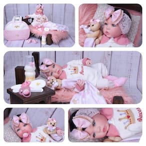 Acompanha:1 bolsa maternidade1 chupeta magnetica1 calça1 blusinha1 coletinho1 par luvas1 par de pantufas1 par de sapatinhos princesa ou bailarina conforme estoque disponivel 1 par de brincos1 faixa de cabelo1 escova de cabelo como na foto1 pente identico a foto1 mamadeira com leitinho1 caixa parda com a nossa logomarca+ kit documentacao e fralda descartavel.Homologação Inmetro: 00717/2021-BRINQ-2