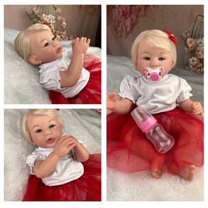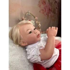 Nossos bebês são confeccionados com o mais alto padrão de qualidade em vinil siliconado. Os olhos azuis brilhantes garantem uma aparência encantadora e realista.