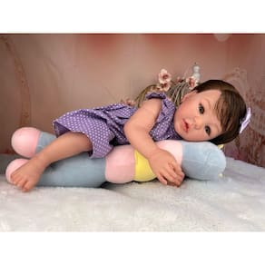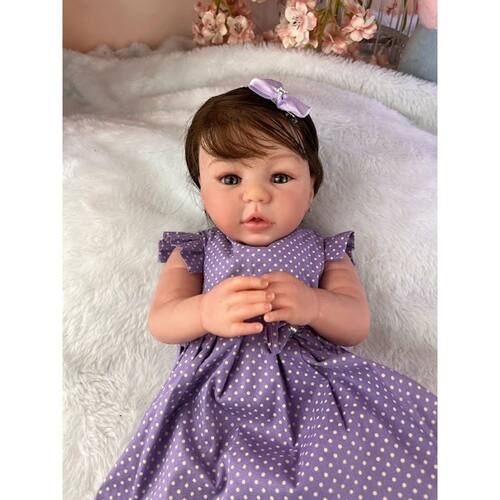Nossos bebês são confeccionados com o mais alto padrão de qualidade em vinil siliconado e tecido macio. Os olhos castanhos brilhantes garantem uma aparência encantadora e realista.