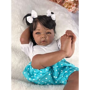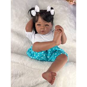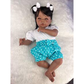 Nossos bebês são confeccionados com o mais alto padrão de qualidade em vinil siliconado e tecido macio. Os olhos castanhos brilhantes garantem uma aparência encantadora e realista.