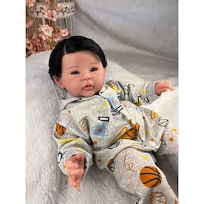 Nossos bebês são confeccionados com o mais alto padrão de qualidade em vinil siliconado. Os olhos castanhos brilhantes garantem uma aparência encantadora e realista.